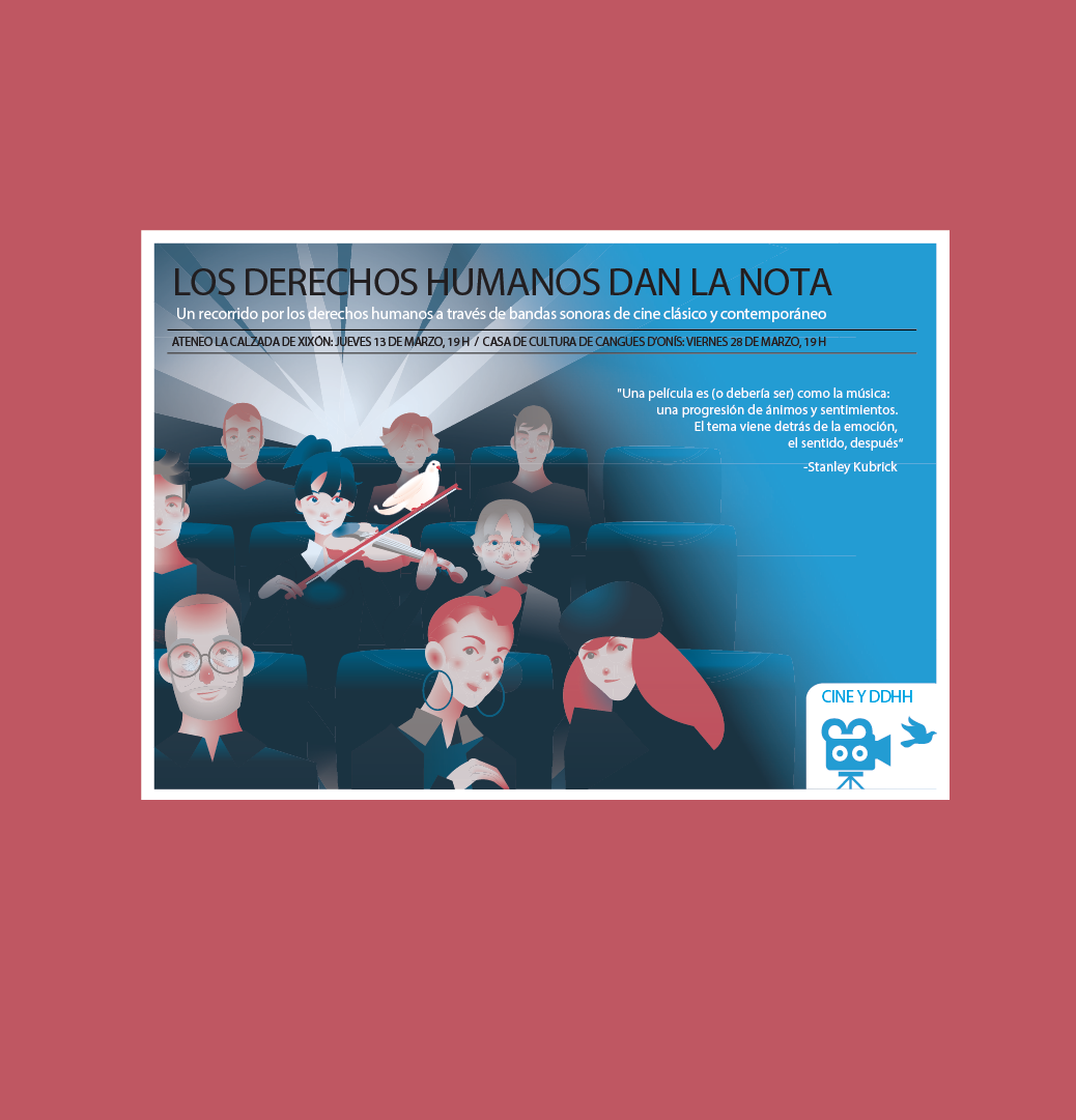 DESCRIPCIÓN: Acción en Red Asturias nos encargó diseñar el cartel y folleto para “Los derechos humanos dan la nota”; un acto organizado por Amnistía Internacional, la Coordinadora Asturiana de ONGD y Acción en Red, con el fin de visibilizar el Día Internacional de los Derechos Humanos. Intérpretes del Conservatorio de Música de Oviedo y otros músicos asturianos, tocaron temas de bandas sonoras de películas que abordaban la temática de los derechos humanos. “La vida es bella”, “La lista de Schindler”, “Tiempos modernos” o “Las nieves del Kilimanjaro” son algunos de los temas musicales de películas que estuvieron en este recital.
