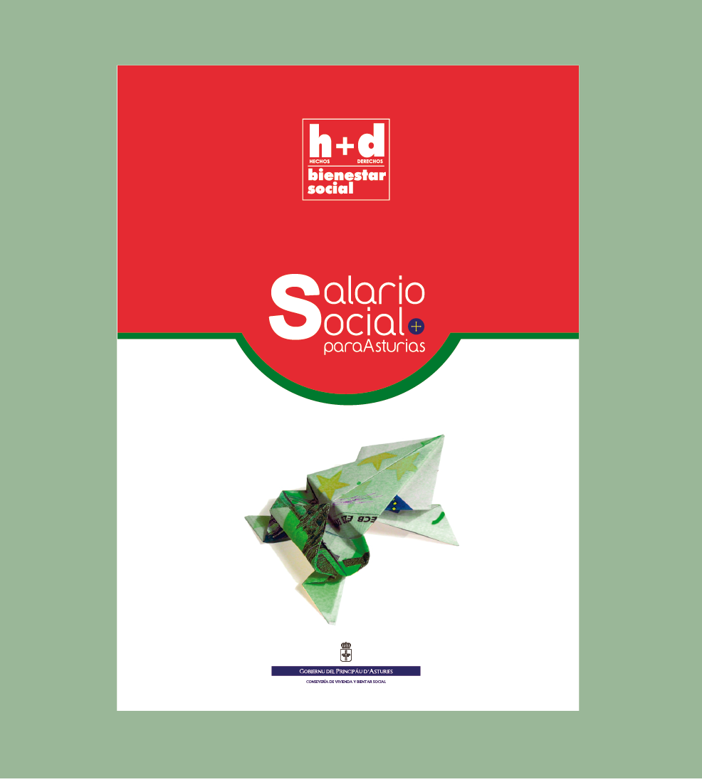 DESCRIPCIÓN: Un gran privelegio fue desarrollar para la Consejería de Vivienda y Bienestar Social la campaña informativa del Salario Social, posiblemente uno de los mayores avances sociales conseguidos en los últimos años en Asturias. Como nos parecía un "gran salto" hacia el Bienestar, hicimos con un billete de 100 euros (falso, por supuesto, 😉 una rana saltarina. El folleto informativo se editó en castellano, asturianu y gallego-asturiano. También desarrollamos una web informativa sobre las condiciones y requisitos para recibir este salario.